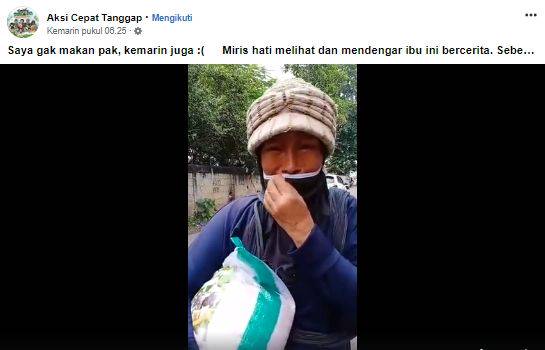 "Saya sudah berhari-hari enggak makan, pak. Dari kemarin juga," katanya sambil mengelap air mata.